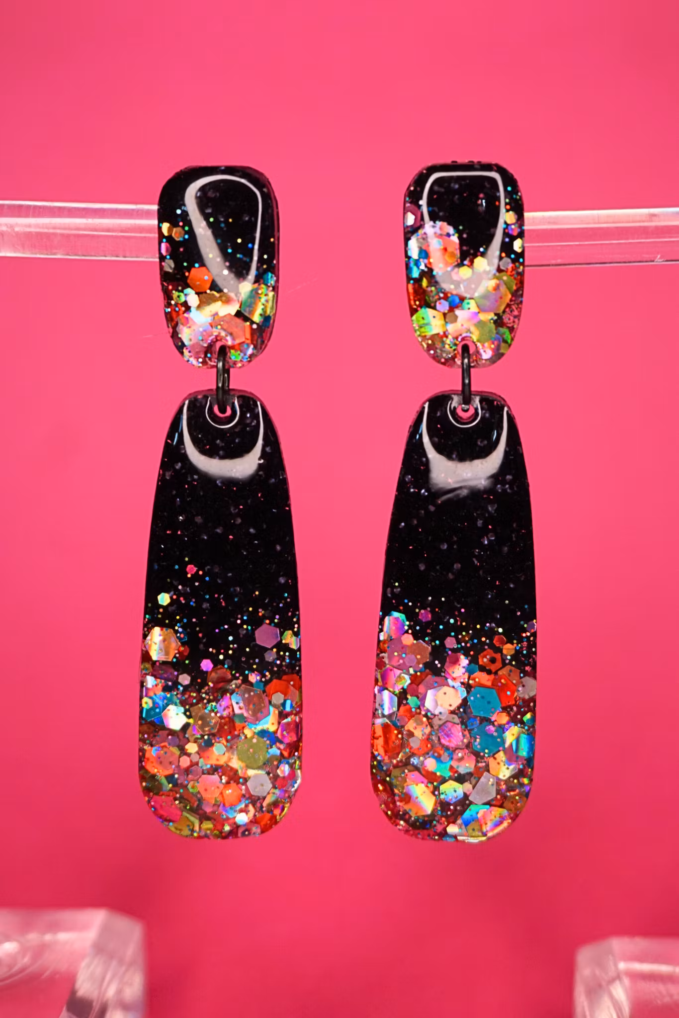 Resin med holografiskt regnbågsglitter och svart puderglitter.